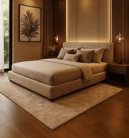 Calm, intentional furniture shaped by soft forms and thoughtful materials, creating an atmosphere of rest and quiet luxury.